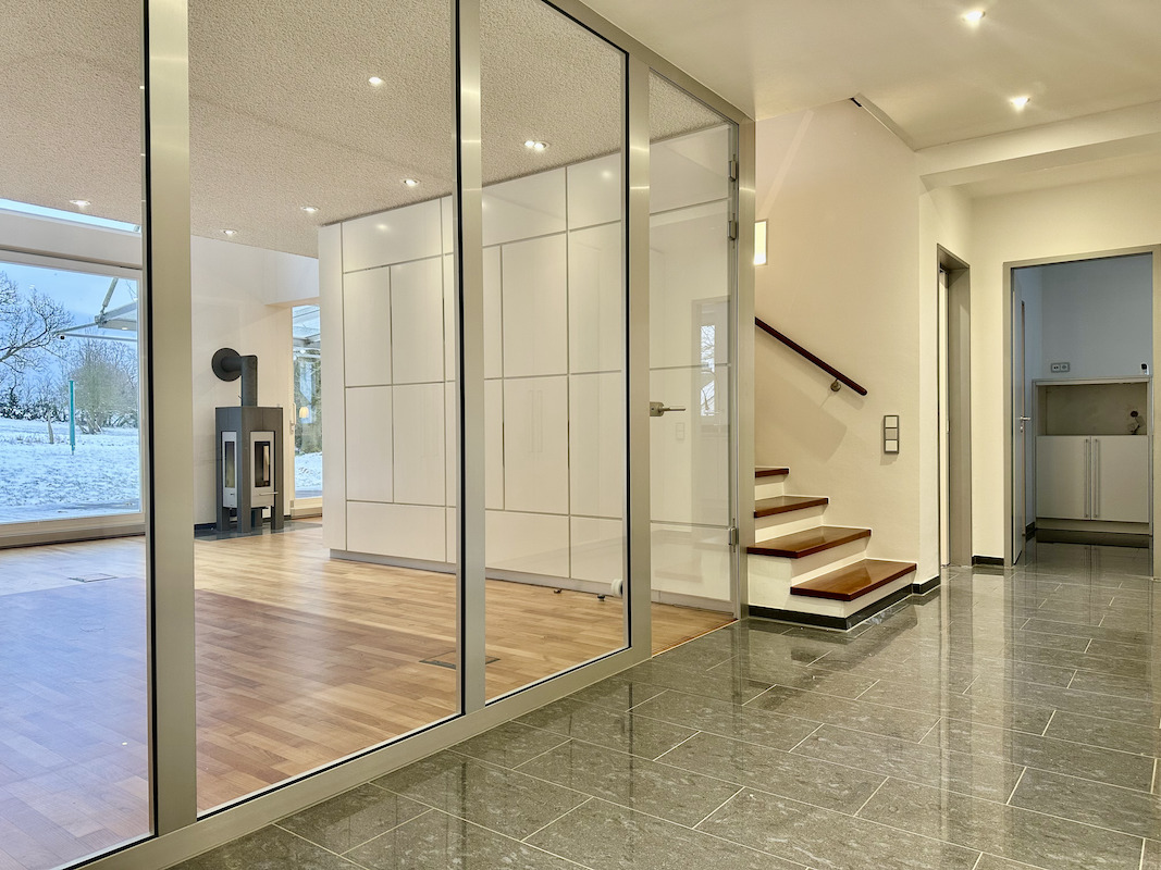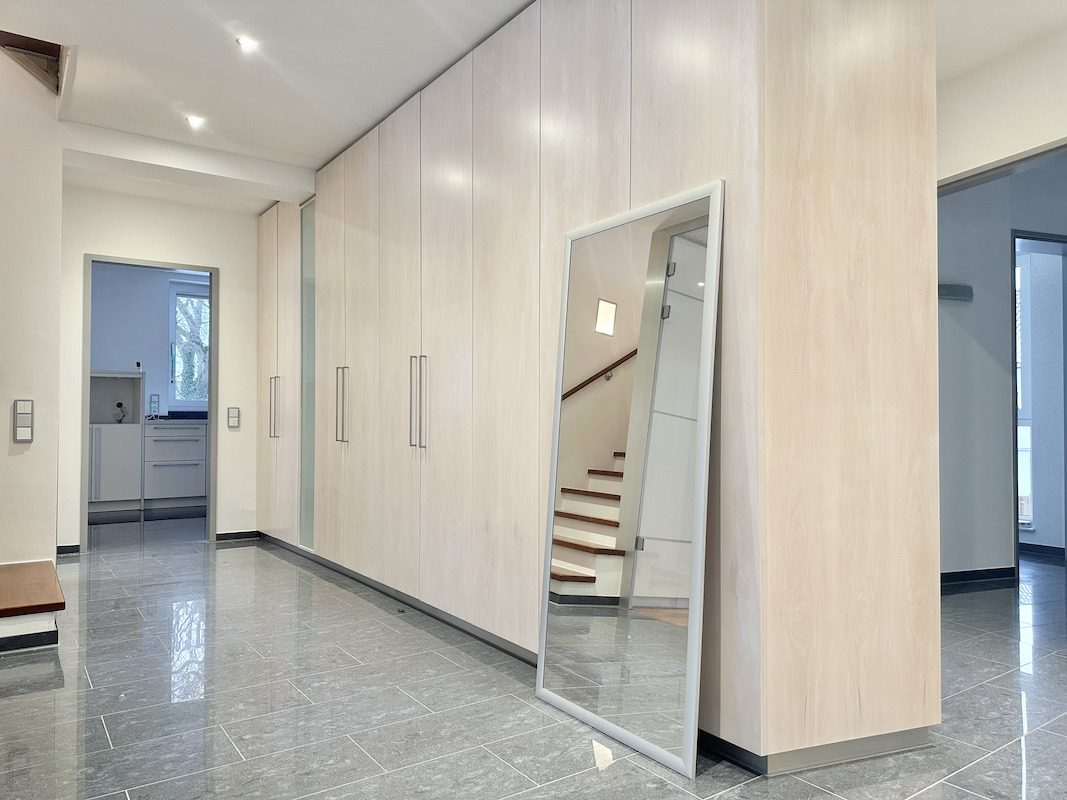 Im Erdgeschoss empfängt Sie ein großzügiger Eingangsbereich mit maßgefertigten Einbauten und Garderobe.
