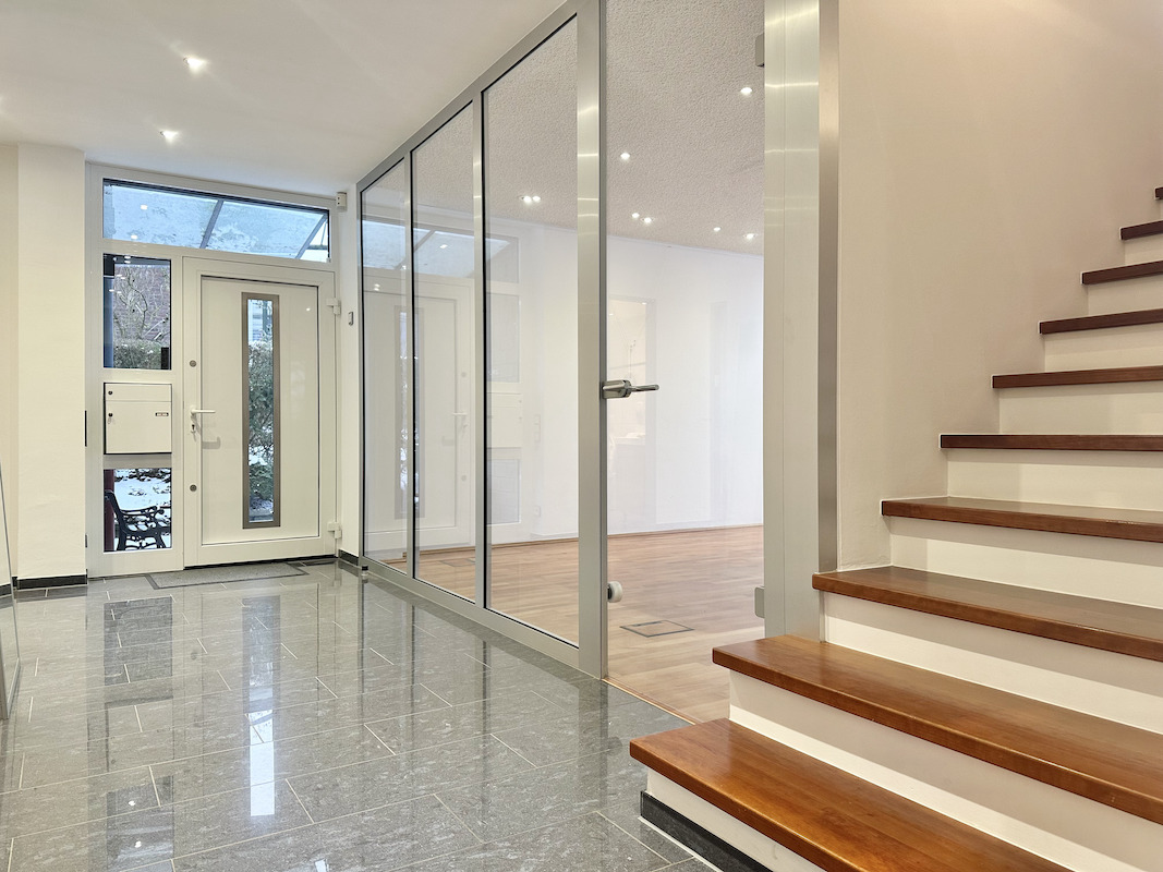 Im Untergeschoss befindet sich eine Büroeinheit mit separatem Eingang, bestehend aus drei Räumen, einer Küche sowie einem Gäste-WC.