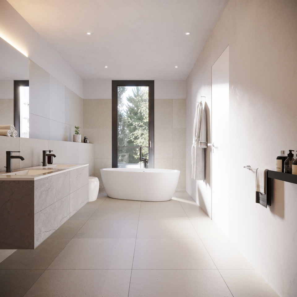 Die Ausstattung der Häuser ist von höchster Qualität: Eine Luft-Wasser-Wärmepumpe sorgt in Kombination mit einer dezentralen Lüftungsanlage für energieeffizientes Heizen. Alle Wohnräume sind mit einer Fußbodenheizung ausgestattet.